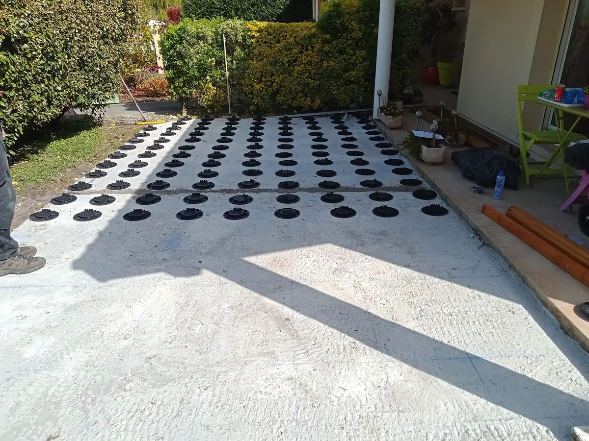 1. Préparation du support et mise en place des plots réglables