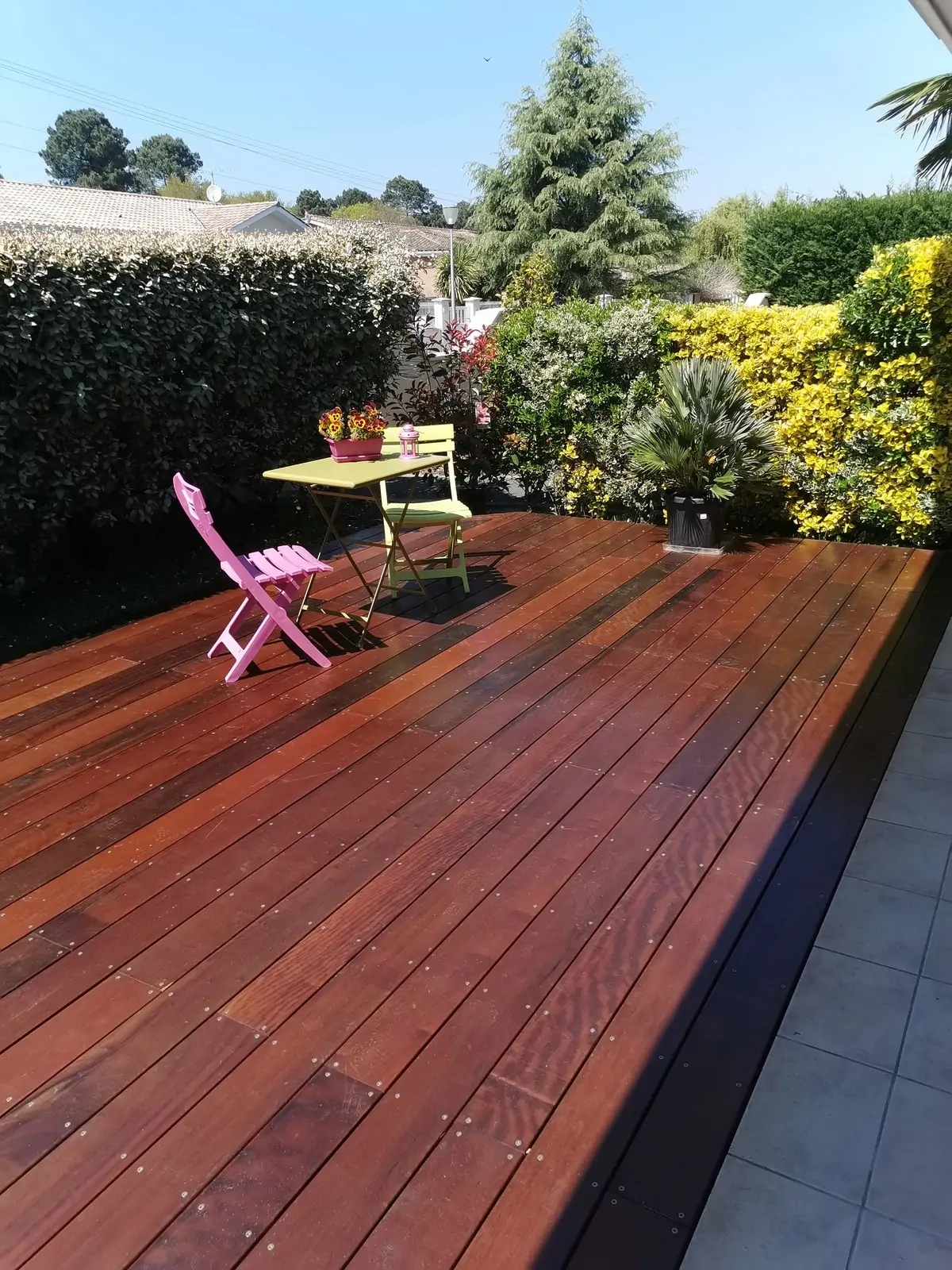 - Matériau durable, surtout avec des bois exotiques comme l’ipé, le cumaru ou le padouk
