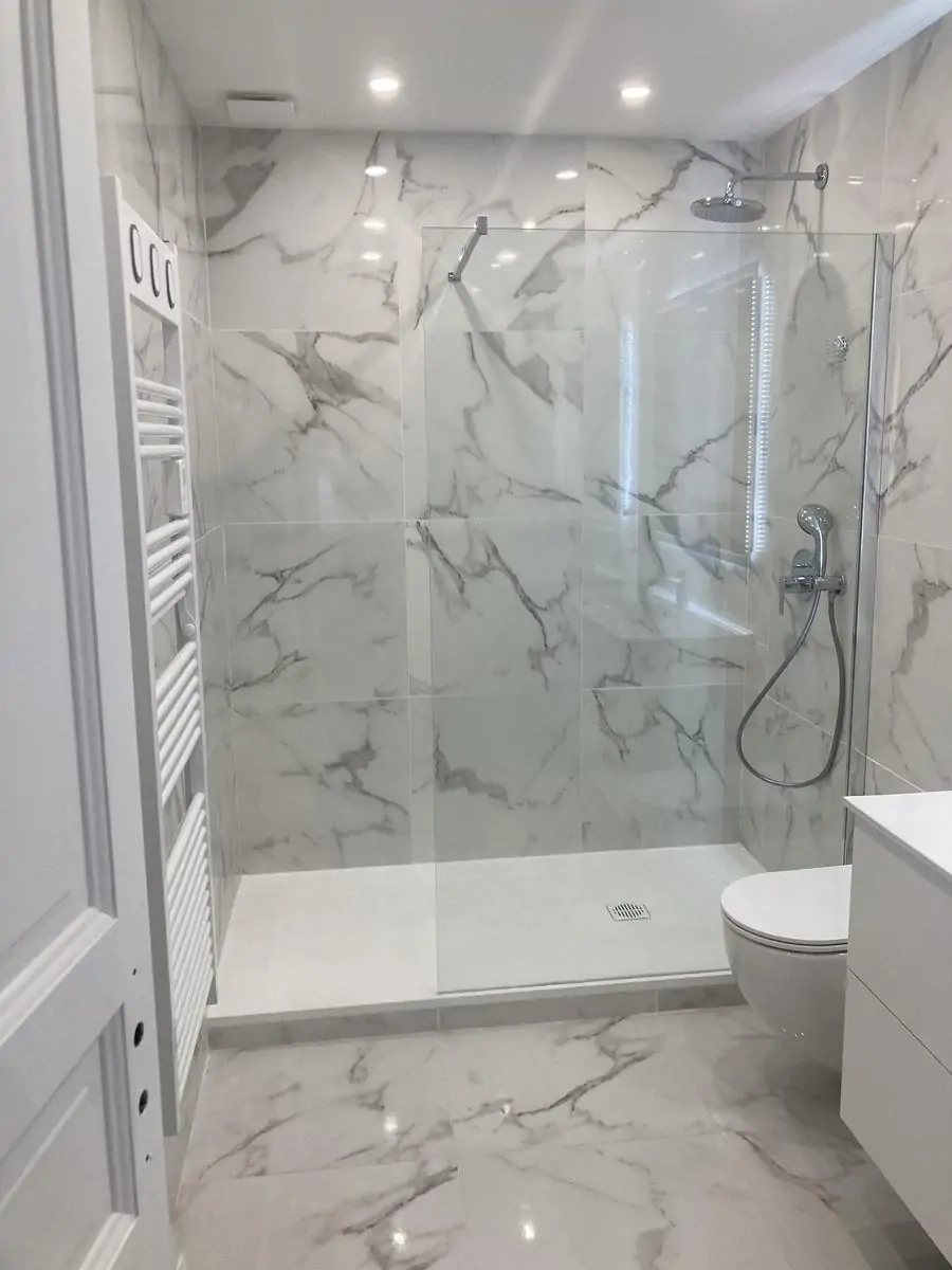 - Installation d’un receveur extra-plat et d’une paroi en verre sécurisée
